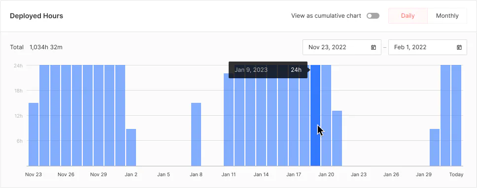 Model deployment, of course, isn’t the end. It should be continuously monitored to keep track of issues, determine performance with increased traffic, and so on. Model provides complete control over endpoint usage, including the ability to start, stop, and pause an endpoint whenever needed with a click of a button. It also provides endpoint visualization metrics like volume and frequency over defined periods.