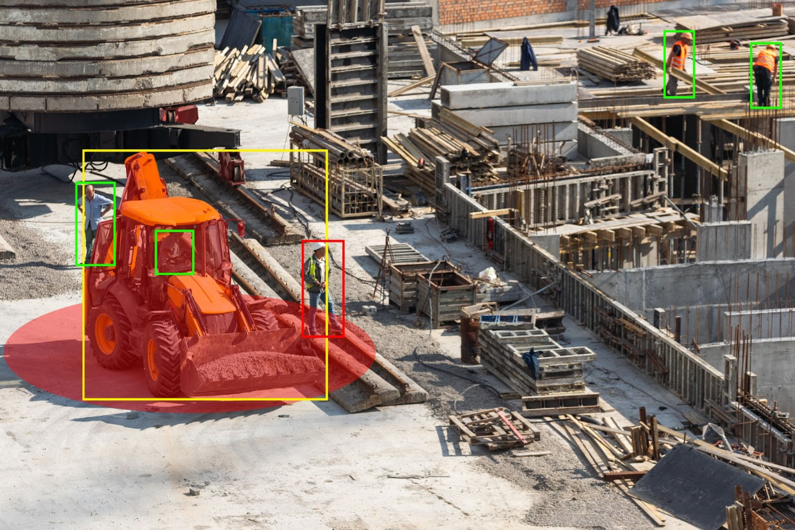 - Detect near misses around other heavy equipment, such as cranes, excavators, and hull assembly areas, by defining dynamic risk zones.