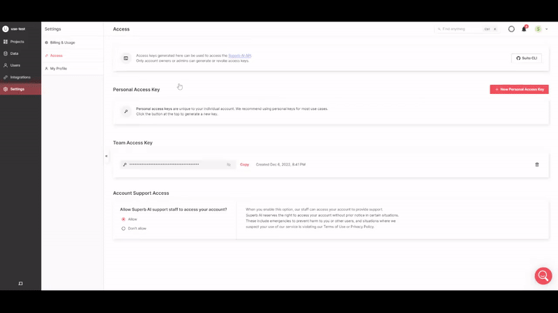 We’ve added the ability to create individual user-level API keys for SDK/CLI operations. Previously, users could only generate a single, tenant-level API key that would be identical for all admin and owner-level users. While tenant-level API keys will still be supported, we suggest you use them primarily for 3rd-party integrations that require a tenant-level connection to the platform or other systems and use the new user-level API keys for most day-to-day SDK/CLI operations.