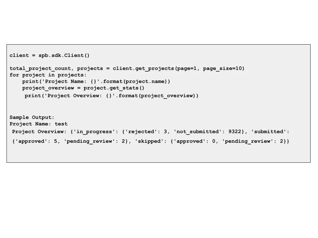 Finally, we’ve enhanced our SDK by adding a few new commands and shortcuts. Now, you can receive relevant project statistics with a few lines.