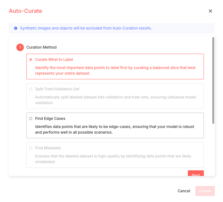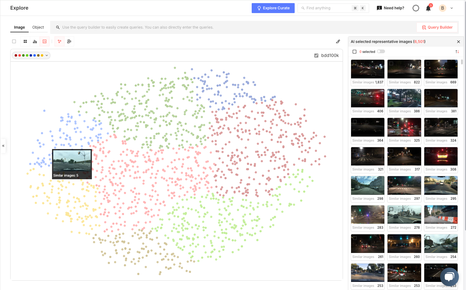 Begin by analyzing your existing dataset to identify gaps and areas where additional data is needed. This could involve assessing the distribution of classes, checking for underrepresented categories, or identifying scenarios that are not adequately covered. To do this with Superb Curate, teams can utilize Model Diagnosis and the Scatter Plot to find rare/edge clusters or take advantage of the various AI powered curation algorithms like What To Label and Find Edge Cases.