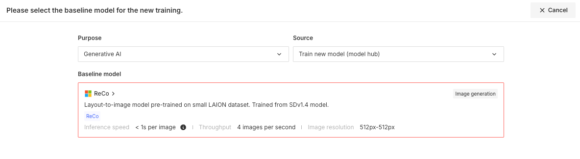 In addition to the various Large Vision Models available to be trained on the platform, the team at Superb AI has added a ReCo Generative AI model that has been pre-trained. This model can then be fine-tuned to specific use cases with just 100 images, enabling the rapid generation of high-quality images.