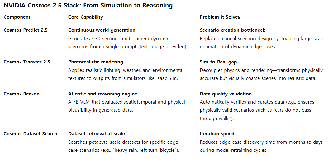 Table 1: NVIDIA Cosmos 2.5 Stacks: From Simulation to Reasoning