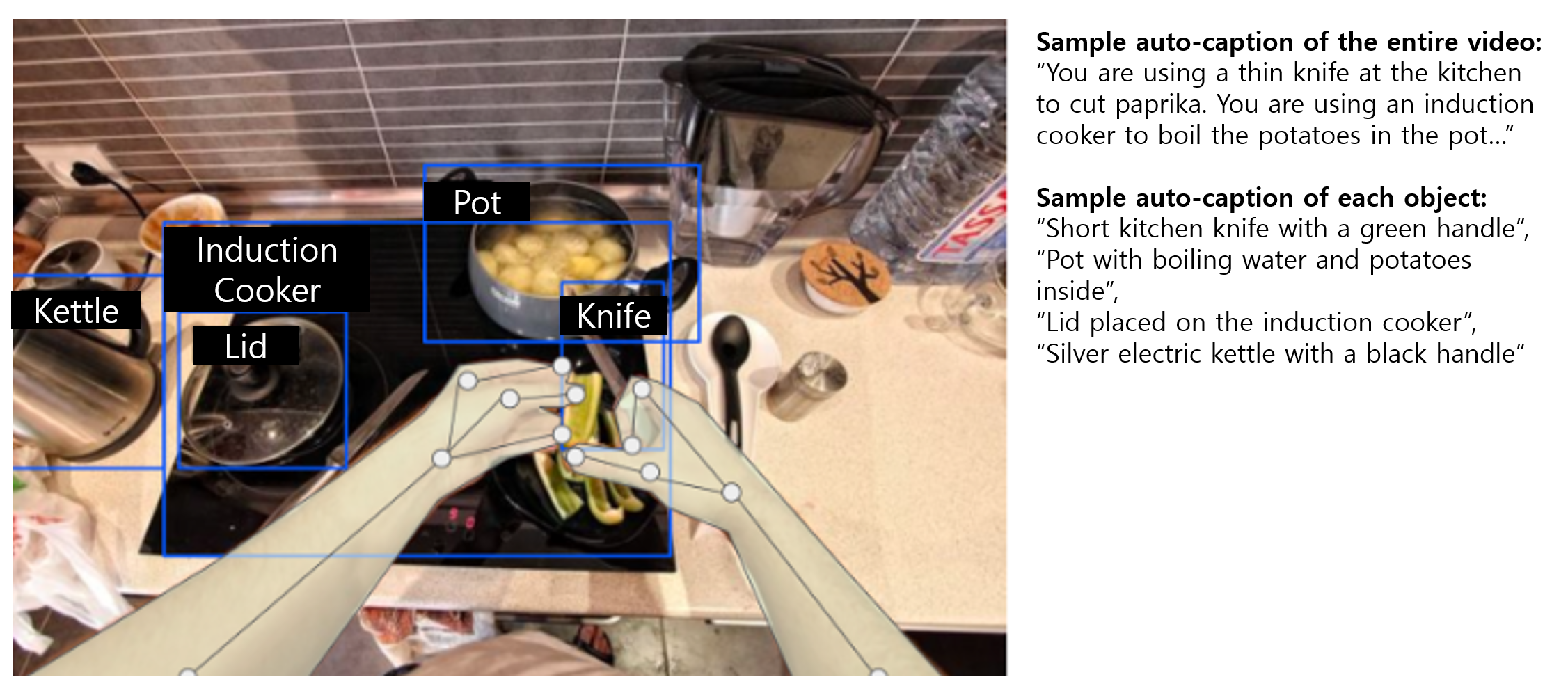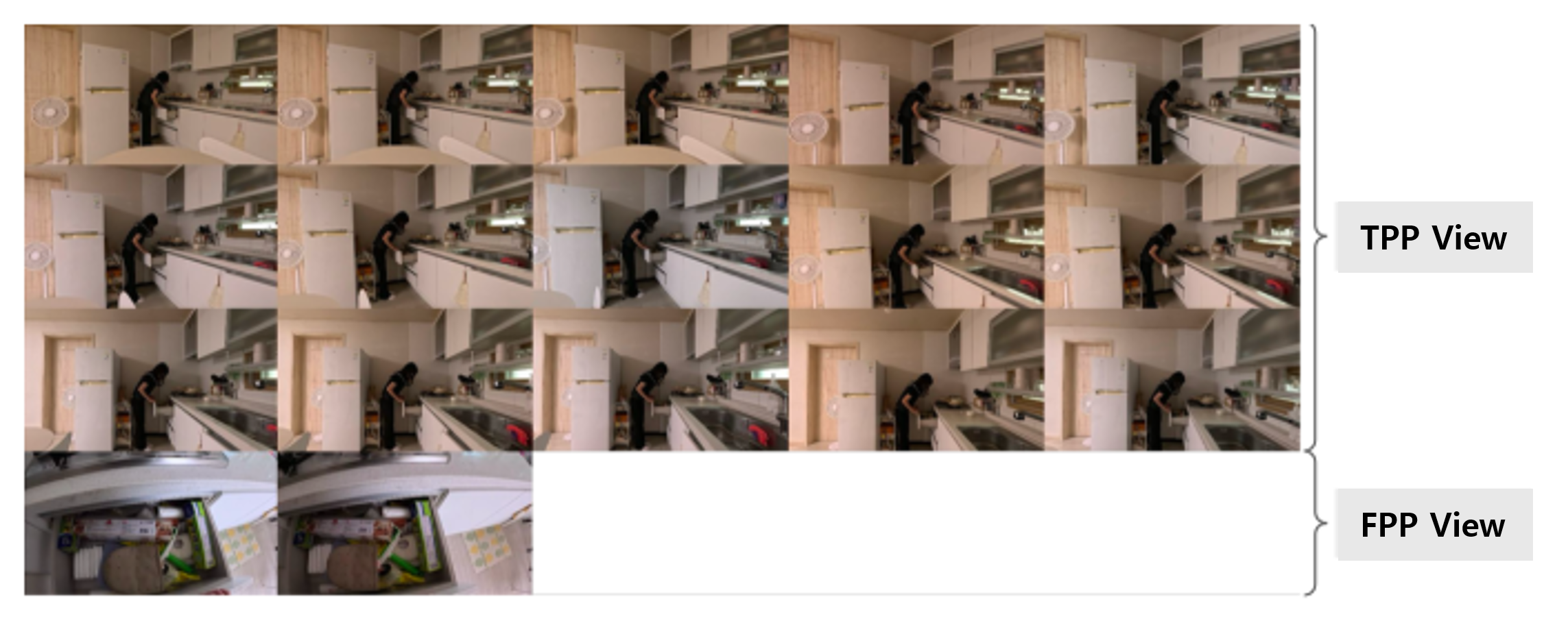 When a robot picks up and moves an object, the full scene is less important than the target object in that moment. Using a first-person stereo view, the dataset helps the model learn fine manipulation information such as distance, angle, and depth between the hand and the object.