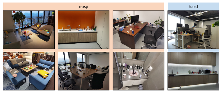 今年のCVPR 2025 Object Instance Detection Challengeは、これまでのInsDet研究よりも大規模で難易度の高いデータセットを特徴としている。 その最大の強みは、屋内ロボットが実際に遭遇する状況をいかにリアルにシミュレートしているかにある。 乱雑で混沌とした屋内空間で、ロボットが離れた場所から特定の物体を識別しなければならないシナリオを再現している。 つまり、このデータセットは現実の産業環境の複雑さと不確実性を反映している。
